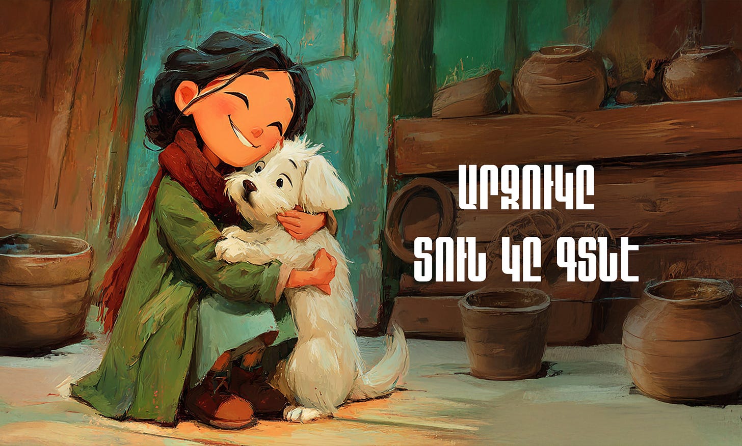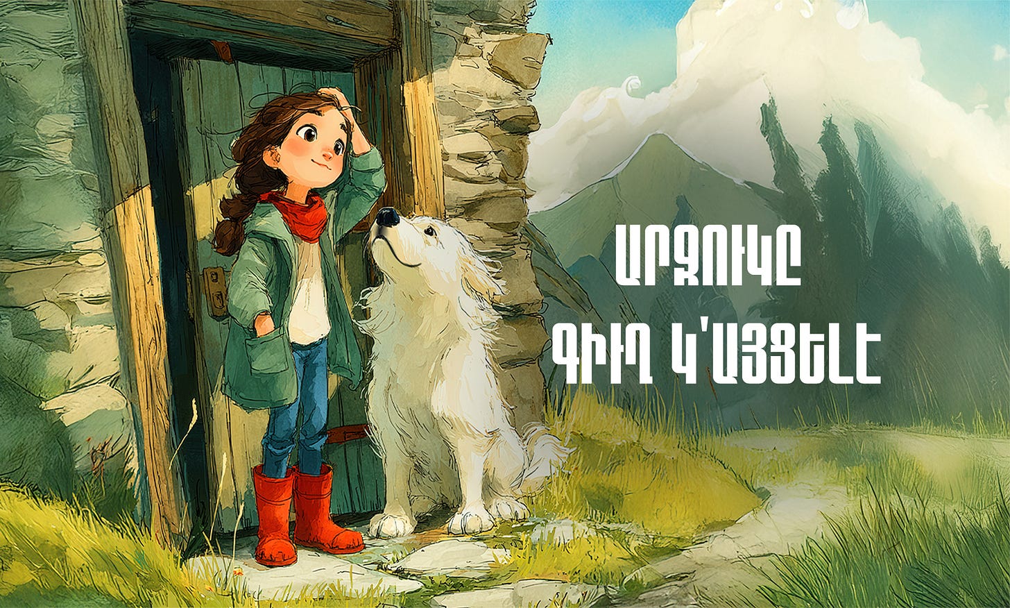 Անձրեւոտ օր մը, Անին իր պարտէզին թուփերուն տակ փոքրիկ, դողդոջուն ճերմակ շնիկ մը կը գտնէ: Ասիկա սովորական շնիկ մը չէ՝ որբացած հայկական գամփռ մըն է, որ ընտանիքի մը պէտք ունի: Մեծ հայրիկին ու մեծ մայրիկին օգնութեամբ, Անին զայն տաք ջուրով կը լուայ, լաւ մը կը կերակրէ եւ առատ սէր կը պարգեւէ: Անին զայն «Արջուկ» կը կոչէ, իր սիրուն արջանման դէմքին համար: Մինչ ան Անիին մահճակալին քով գտնուող իր տաքուկ զամբիւղին մէջ կը տեղաւորուի, իր հսկայ թաթերը արդէն իսկ կը մատնեն այն մեծ ու քաջ շունը, զոր ինք շուտով պիտի դառնայ: Սրտառուչ պատմութիւն մը՝ սեփական տունն ու տեղը գտնելու մասին: