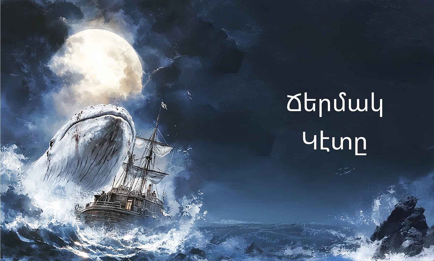 Հերման Մելվըլին «Ճերմակ Կէտը»ին մէջ, պատանի Իսմայէլ կը միանայ կէտորս նաւու մը եւ կը բռնուի Ահաբ նաւապետին մոլուձքին մէջ՝ գտնել եւ ոչնչացնել հսկայ ճերմակ կէտը որ խլեց իր ոտքը: Իսմայէլի աչքերով կը հետեւինք նաւաստիին՝ անծայրածիր ովկիանոսներու վրայ, երբ որսորդութիւնը կը դառնայ արկածէն շատ աւելի վտանգաւոր: Ե՞րբ վճռականութիւնը կը դառնայ խենթութիւն: Ի՞նչ գին պէտք է վճարել վրէժի համար: Խորունկ ամերիկեան պատմութիւն մը ճակատագրի, ճգնումի եւ մարդուն ու բնութեան միջեւ պայքարի մասին՝ պատանիի աչքերով դիտուած ու պատմուած, որ կը բացայայտէ աւելի մութ աշխարհ մը: